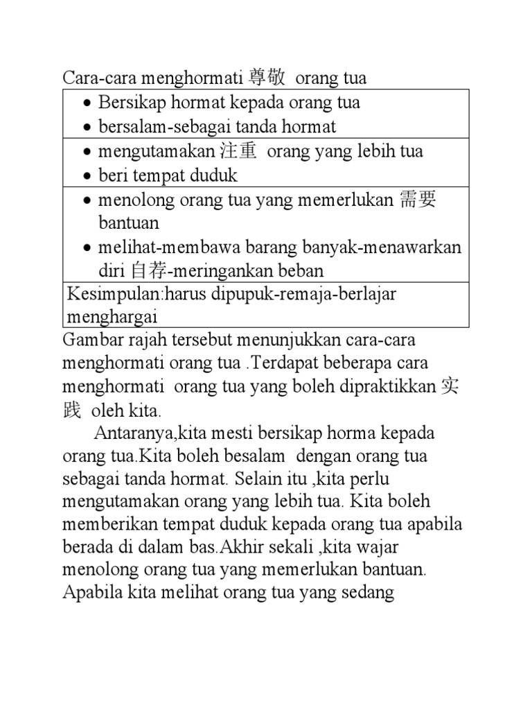 Mengajarkan anak Anda untuk menghormati Anda saudara yang lebih tua adalah salah satu aspek paling penting dalam mendidik anak. Bahagiakan mereka dengan kemampuan yang ada bisa 3. Sebelum menutup tirai huraian ibubapa juga dapat menerapkan sikap menghormati orang tua dengan memberi kesedaran kepada anak-anak.